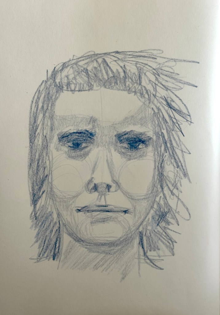 Two colored pencil drawings of the same face. It is interesting that they could be so different from each other and the photo reference. Working on likeness and getting away from what I see as the same face in all of my drawings/paintings. I want my portraits to look like the model!