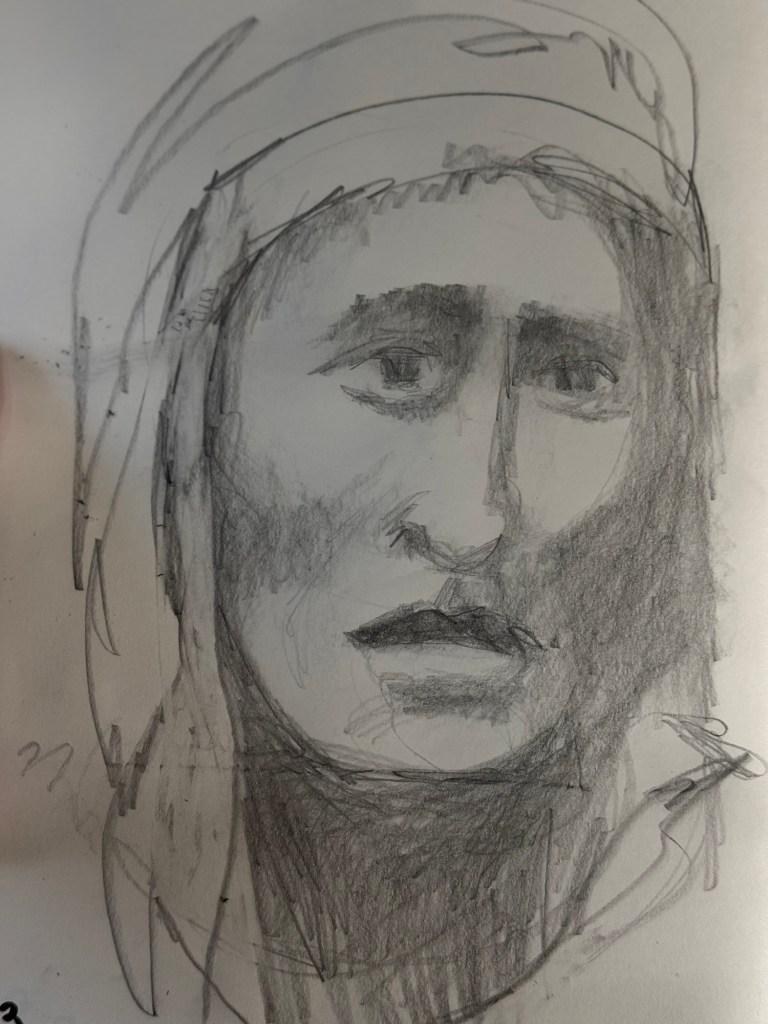 Still catching up. This morning’s quick 15 minute pencil sketch. I really like this photo reference!