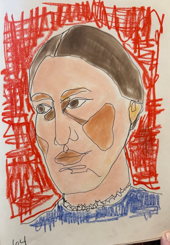 Crayon, ink, and pan pastel. I am still looking for something!