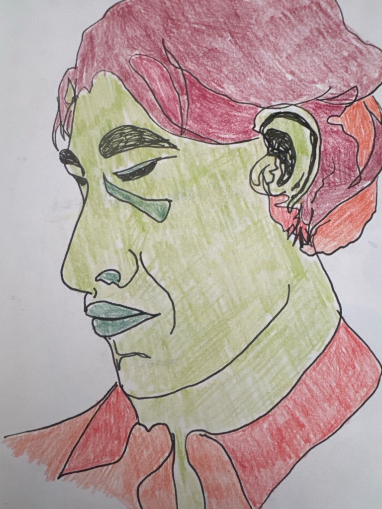 Colored pencil & pen. This guy looks a little green with envy.